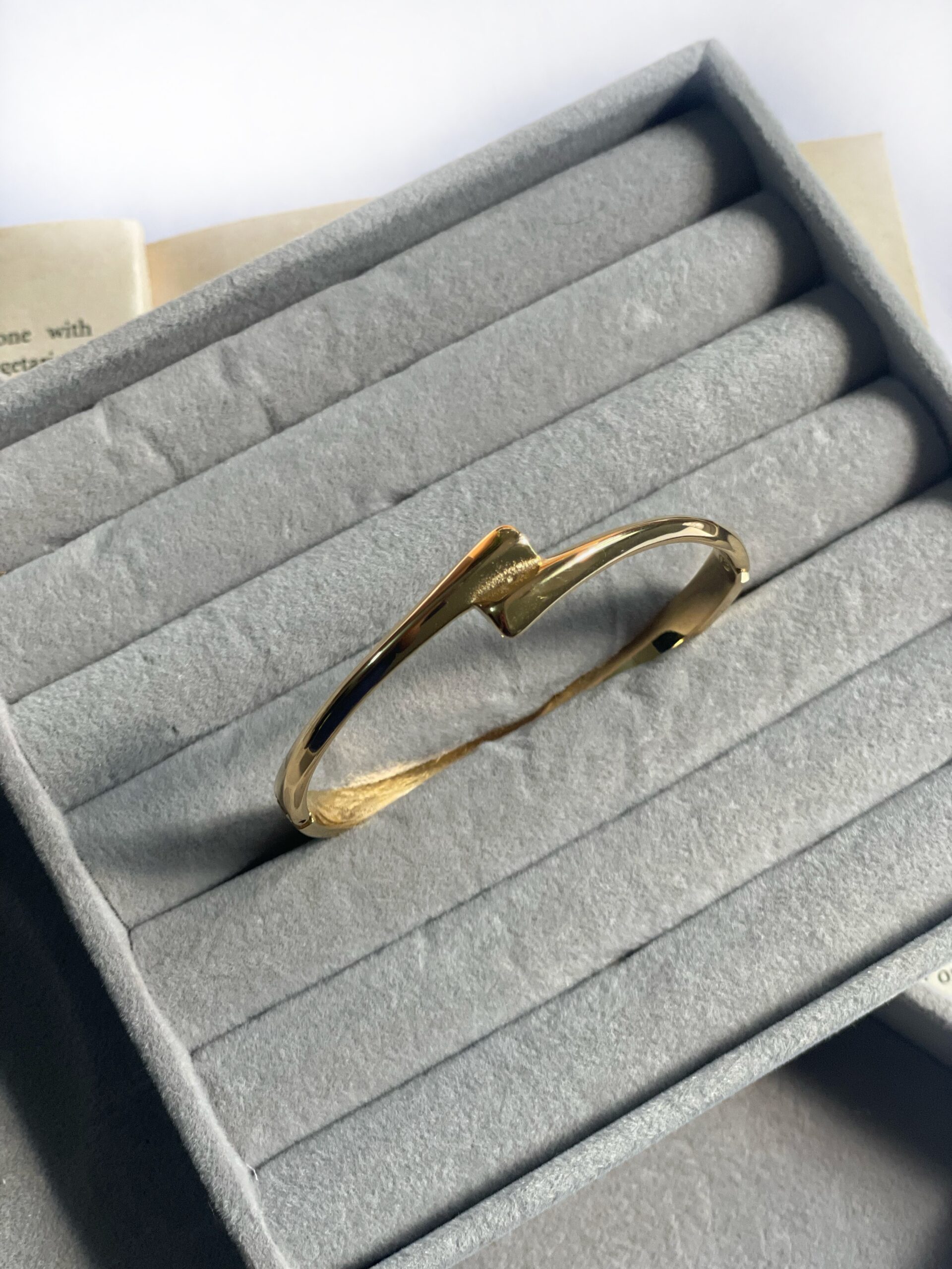 Experience the beauty of subtlety with our Embrace cuff, where a plain golden band wraps around the wrist with ends that offer a tiny, reassuring hug.