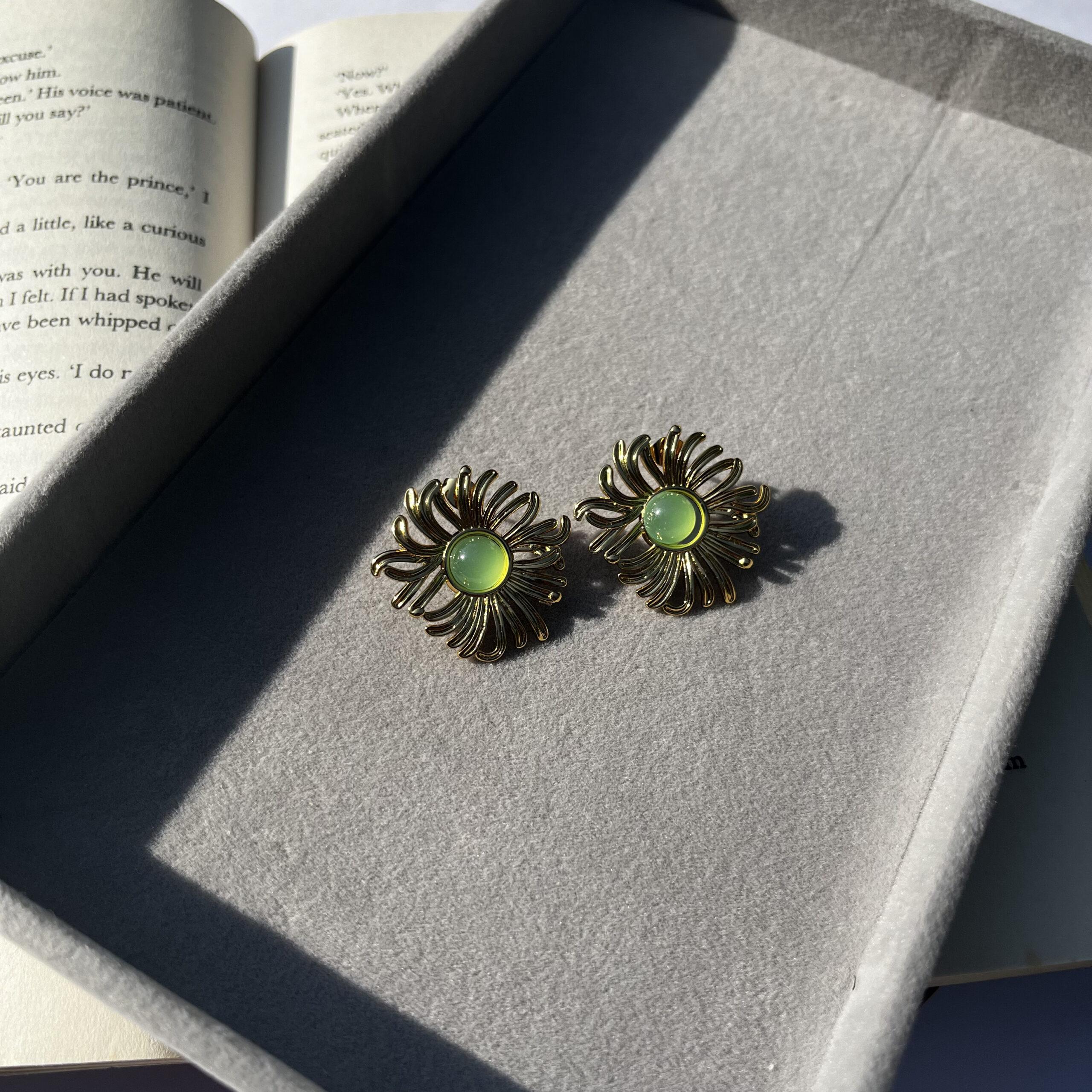 Behold Emerald Bloom Earrings, with a beautiful flower design centered around a lush green gemstone