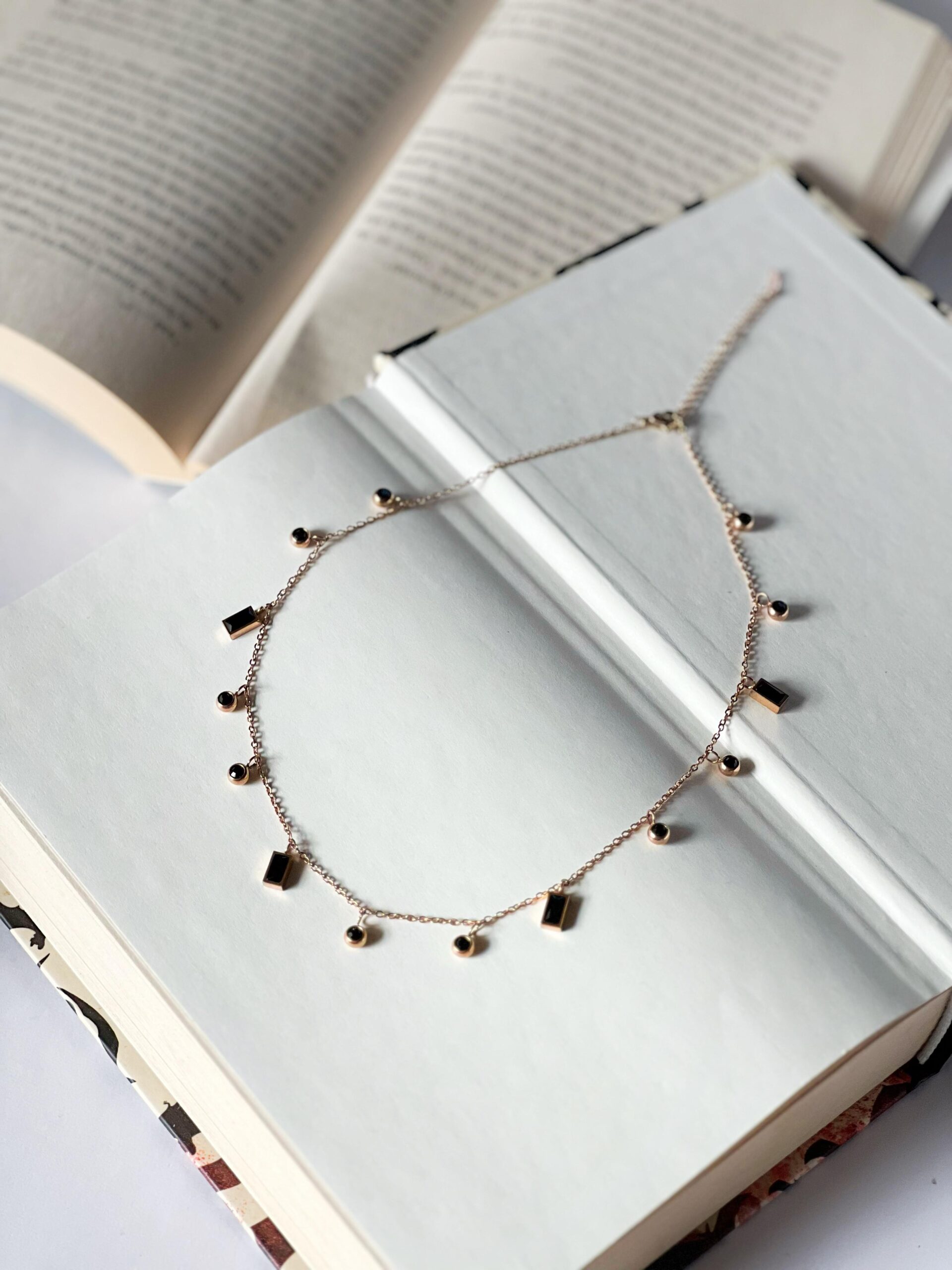 A variant of our BEST SELLER, the Henna Necklace- in all black.